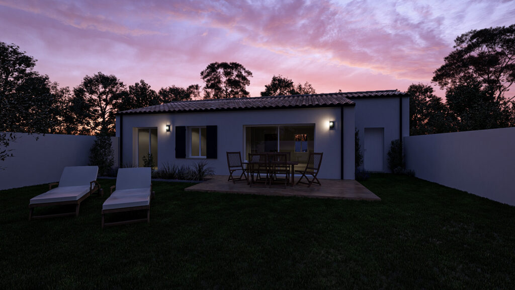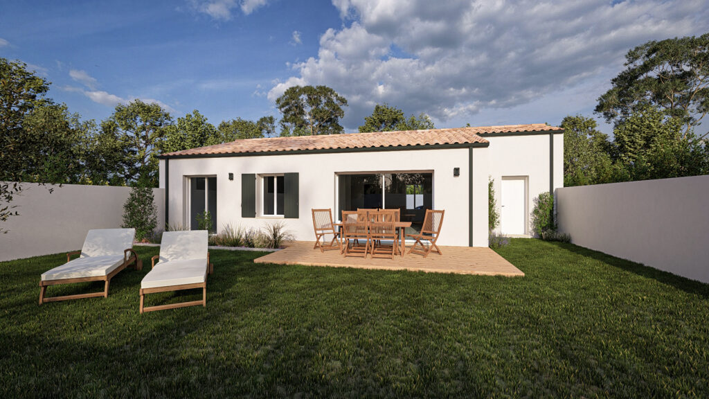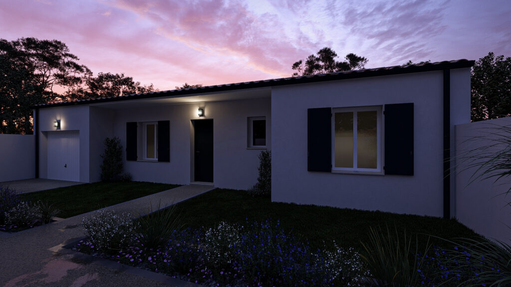Cette maison de plain-pied propose un agencement simple et fonctionnel, idéal pour une vie familiale confortable. Elle s’organise autour d’une vaste pièce de vie ouverte réunissant salon, salle à manger et cuisine, bénéficiant d’une belle luminosité. L’espace nuit comprend trois chambres, une salle d’eau et des WC indépendants, offrant une bonne séparation des usages. Un garage attenant et un porche viennent compléter l’ensemble pour plus de praticité au quotidien.