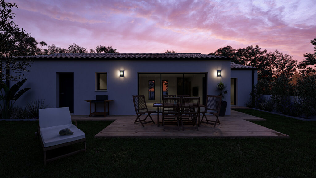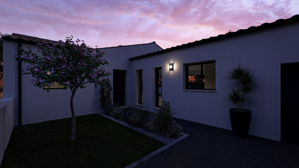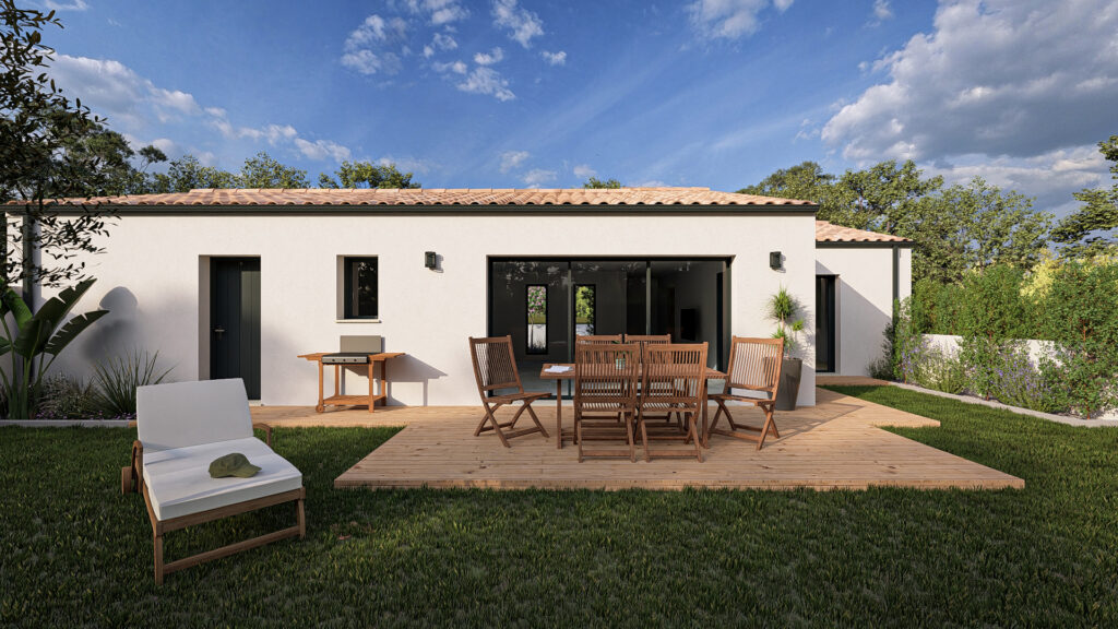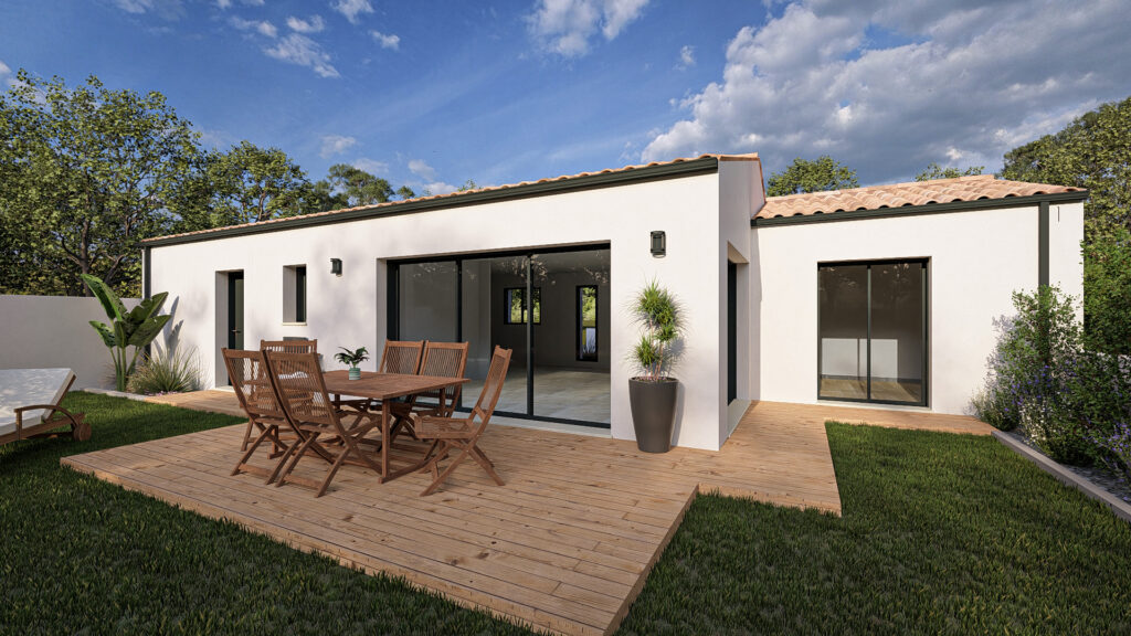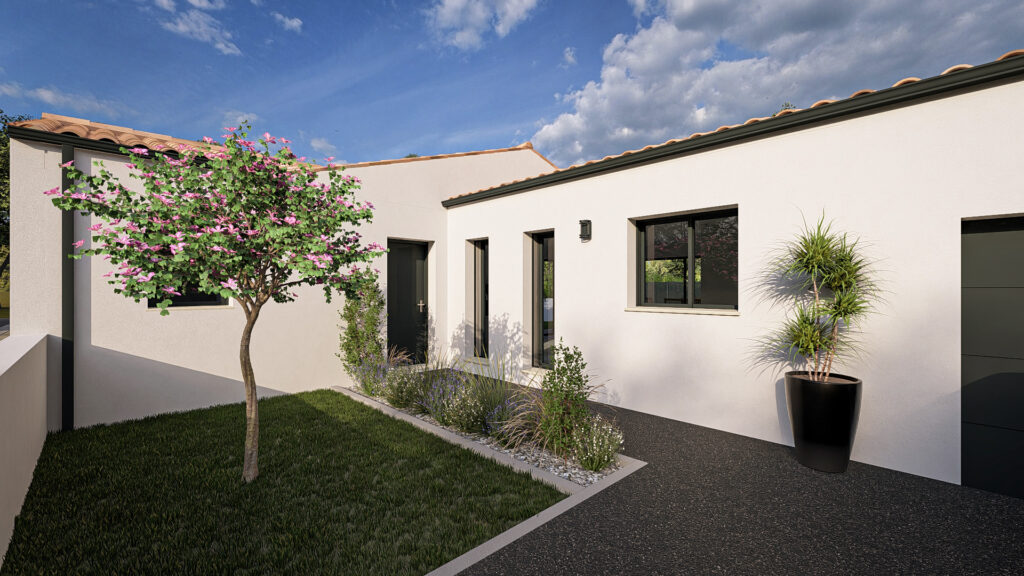 Cette maison de plain-pied offre une organisation fluide et fonctionnelle, pensée pour le confort au quotidien. Elle s’articule autour d’une grande pièce de vie ouverte et lumineuse, regroupant salon, salle à manger et cuisine, avec un accès direct au cellier. L’espace nuit comprend deux chambres, une salle d’eau spacieuse et des WC indépendants, bien séparés de la zone jour. Un garage généreux et une entrée bien définie complètent l’ensemble, pour une maison pratique et agréable à vivre.